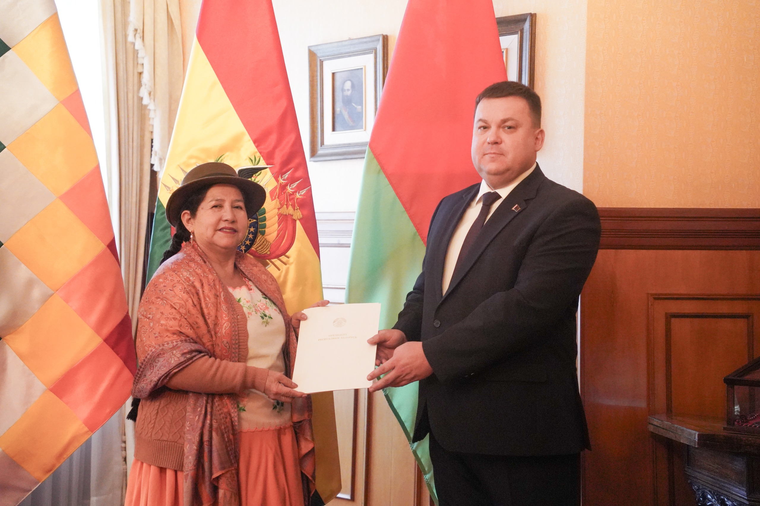 13 октября 2025 г. Чрезвычайный и Полномочный Посол Республики Беларусь в Боливарианской Республике Венесуэла и Многонациональном Государстве Боливия по совместительству Дмитрий Деревинский вручил копии верительных грамот Министру иностранных дел Боливии Селинде Соса Лунде.