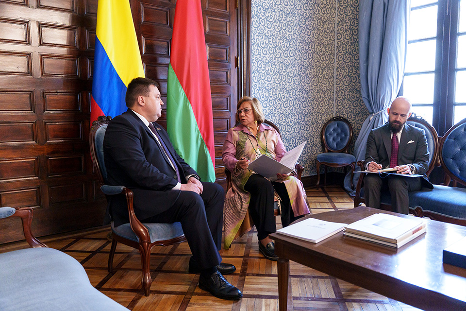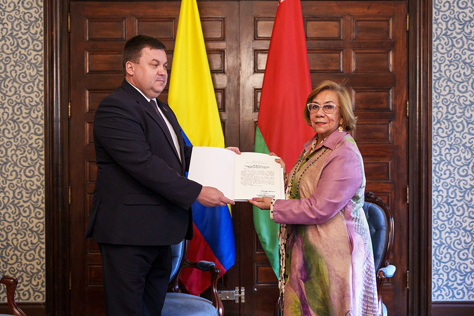 31 марта 2026 г. Чрезвычайный и Полномочный Посол Республики Беларусь в Боливарианской Республике Венесуэла и Республике Колумбия по совместительству Дмитрий Деревинский вручил копии верительных грамот Министру иностранных дел Республики Колумбия Росе Йоланде Вильявисенсио Мапи.